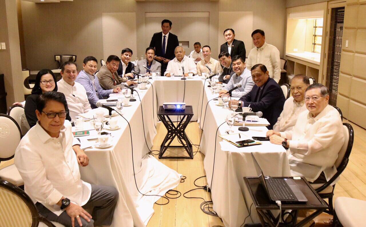 Executive Secretary Salvador Medialdea, Presidential Legislative Liaison Office Secretary Adelino Sitoy meet with lawmakers on Monday, August 5, 2019, in Malacañang for the pre-Legislative-Executive Development Advisory Council. Photo from Sen. Christopher Go