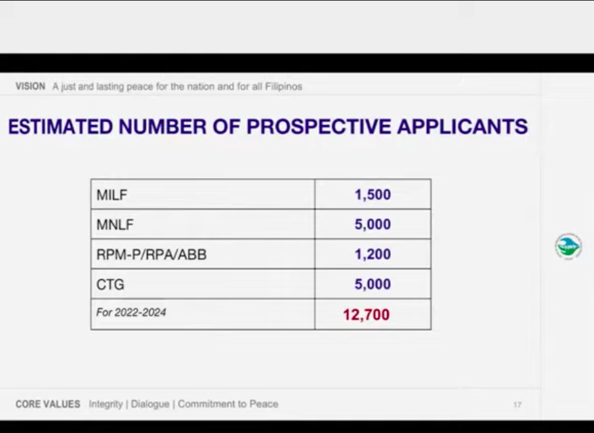 MANILA, Philippines — The Office of the Presidential Adviser on Peace Process (OPAPP) is expecting around 12,700 applicants for amnesty from 2022 to 2024, its chief of staff Assistant Secretary Wilben Mayor said Tuesday.