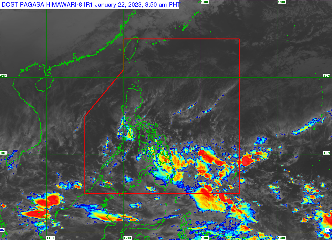 The trough of an LPA outside PAR will bring rain to parts of Eastern Visayas and the Caraga, Davao regions in Mindanao.