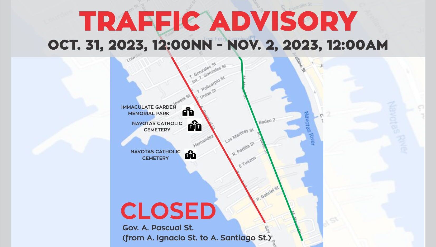 MANILA, Philippines — The Navotas City Public Information Office announced a temporary road closure on Governor A. Pascual Street (from A. Ignacio Street to A. Santiago Street) for Undas 2023.