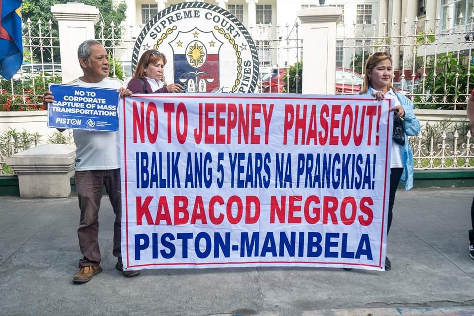 MANILA, Philippines — Members of transport groups Piston and Manibela staged a picket protest in front of the Supreme Court (SC) on Tuesday to reiterate their call for the issuance of a temporary restraining order on the public utility vehicle modernization program.