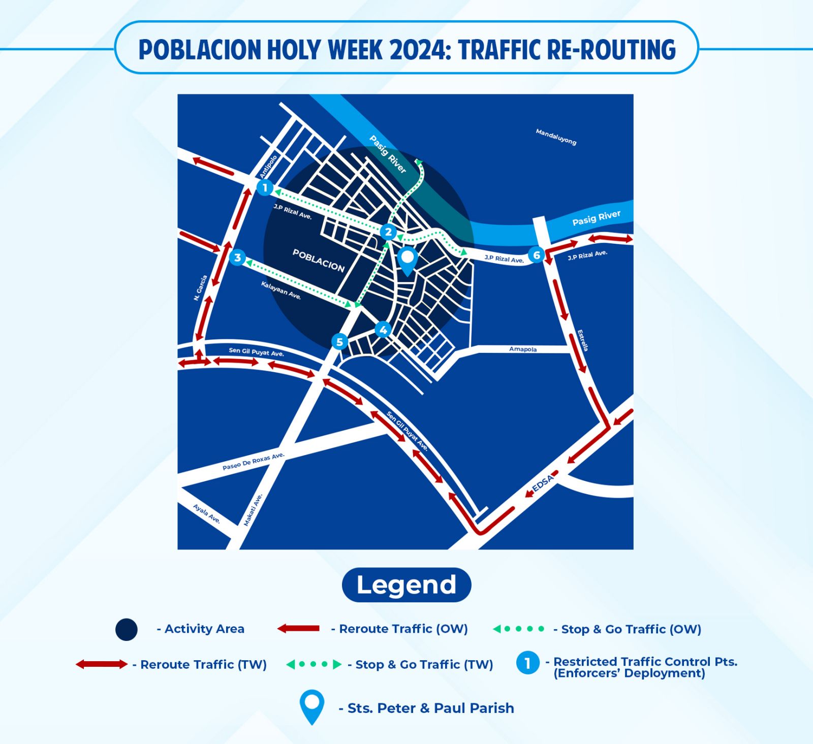 MANILA, Philippines – Makati City on Tuesday announced a traffic rerouting plan in part of the city due to roadworks and religious activities from Holy Wednesday, March 27, to Good Friday, March 29.