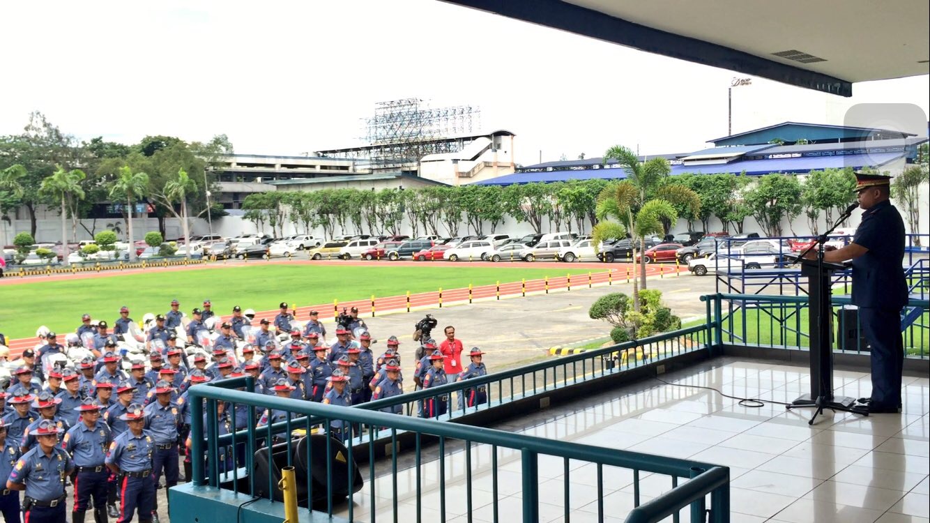 PNP chief Director General Ronald “Bato” Dela Rosa gives a pep talk to Highway Patrol Group personnel who will be sent to Edsa and ease the perennially congested traffic on the highway. JULLIANE LOVE DE JESUS/INQUIRER.net