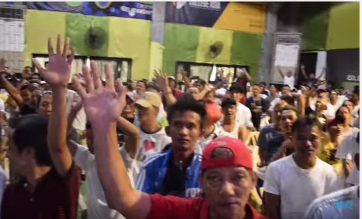 “They (the policemen) sang with us like we’re friends. I realize we were almost the same, that we shared the same experience and they were also once addicted to something,” said Aldrin Rubio, 45, who joined the chorus with 570 other men at the Community Baptist Church in Pasig.
