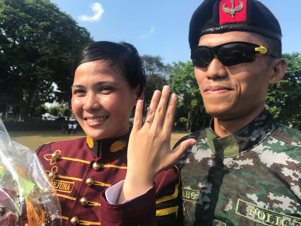 Allabo and Bejuna have been together for four years, most of the time apart because he was training for the SAF while she was inside the Academy.